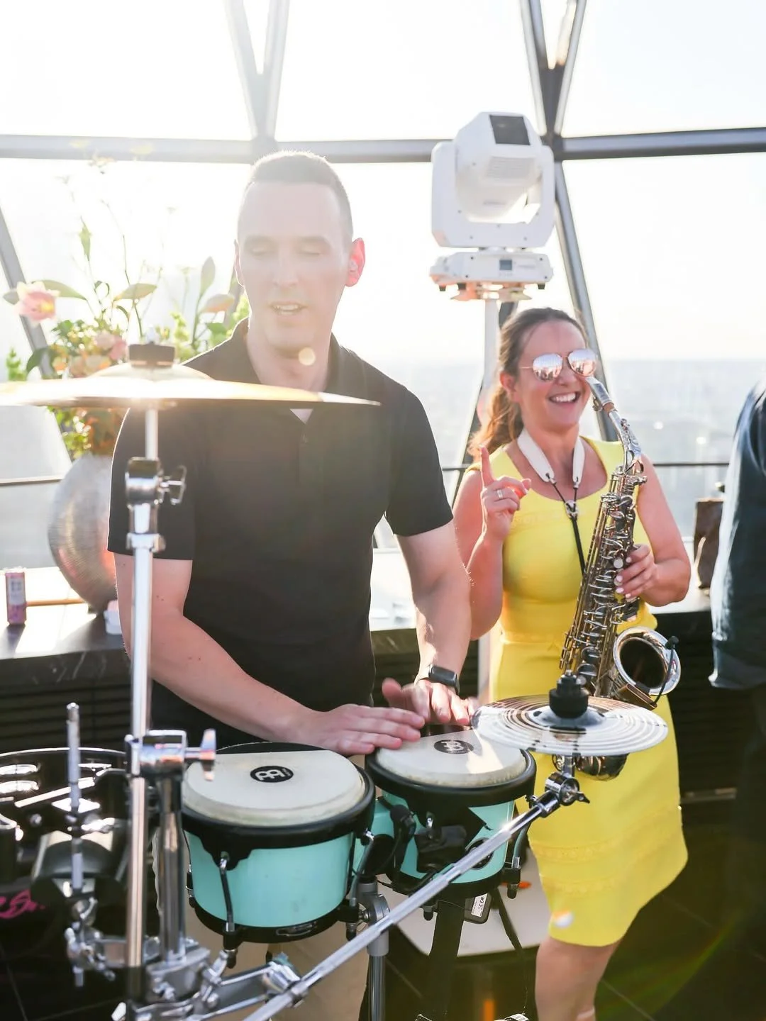 Our live saxophonists add a layer of sophistication, performing both smooth and powerful melodies throughout the DJ sets. Their ability to blend with the DJ’s mixes is second to none and creates a unique sound and atmosphere that feels elegant and full of life.